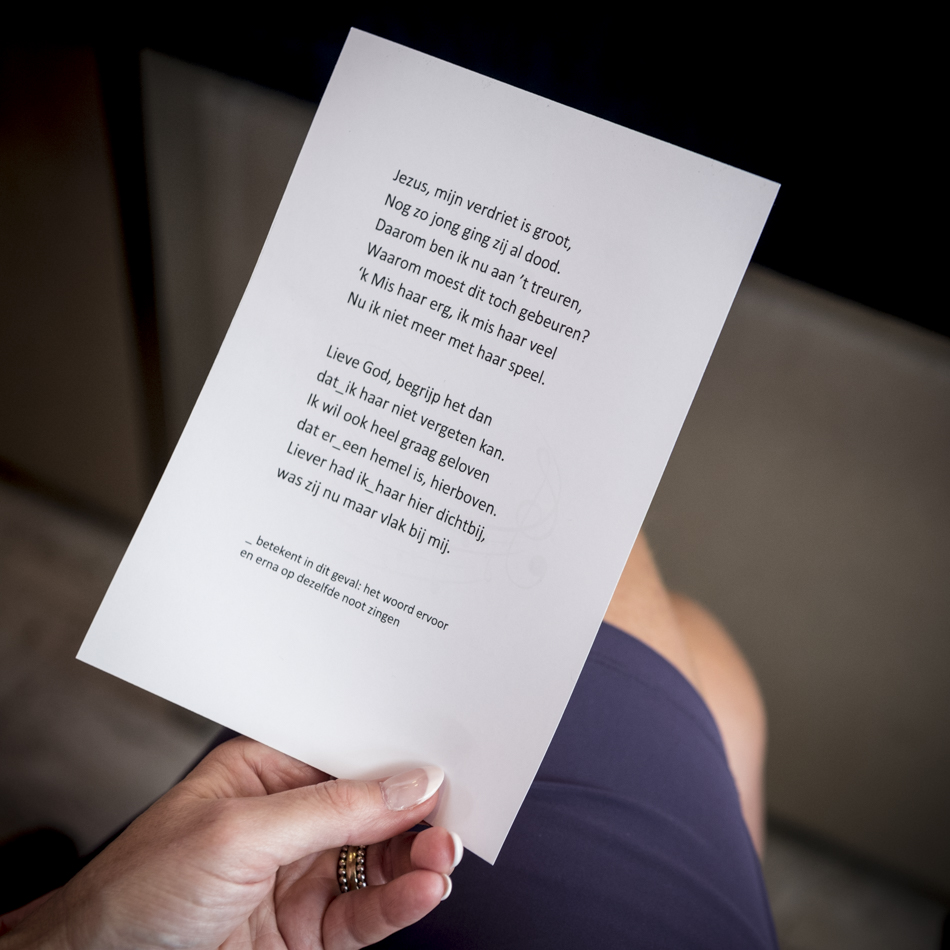 - Indien men vooral niet naar de tekst moet luisteren: vertel waarom niet en vertel waarom dit nummer belangrijk was/is. Dit zorgt ervoor dat een muziekstuk bijdraagt aan de personalisering van een uitvaart.