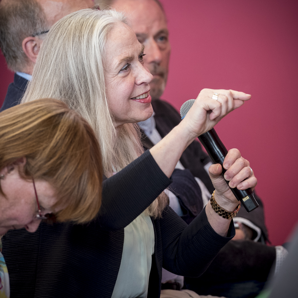 Hierna volgen vragen: wat als de familie geen idee heeft wat muziek betreft, wat is dan de rol van de uitvaartleider? Bruin: probeer er in gesprek achter te komen of neem een kijkje in de cd-kast van de overledene. Wanneer dat niet lukt: bedenk je dat de muziekkeuze niet persoonlijk hóeft te zijn. Er volgen meerdere opmerkingen uit het publiek over onderwerpen die later in de middag aan bod zullen komen. En een toevoeging dat degene die het muziekstuk uitvoert het ook persoonlijk kan maken, bijvoorbeeld een kleindochter die een lied zingt.