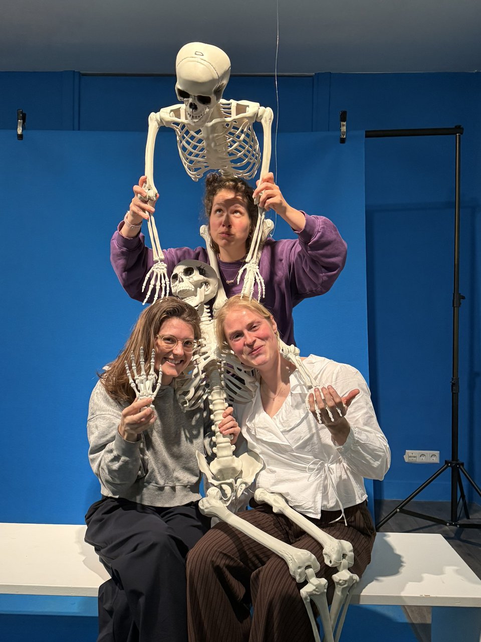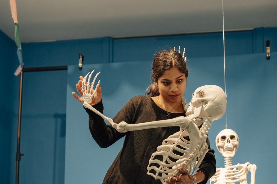 Skeletten komen veel voor in Veldhoens kunst. Kleine en grote modellen, in allerlei poses. Maak je eigen kunstwerk met een skelet. Of twee. Hoe sta jij ‘tegenover’ de dood? In innige omhelzing of op afstand?